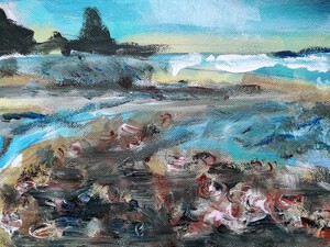 2019Collage van een boot op zee aangevuld met een schildering.